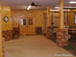 Tack room with view into arena