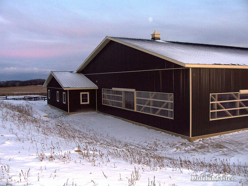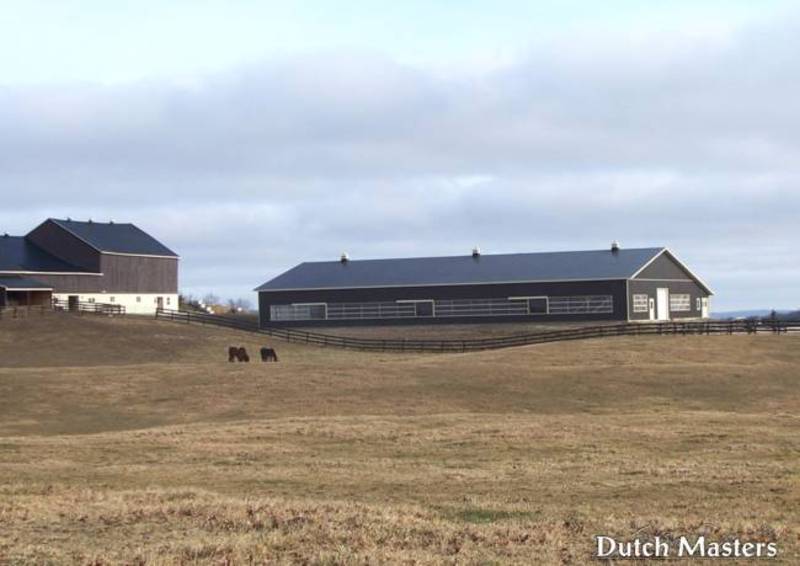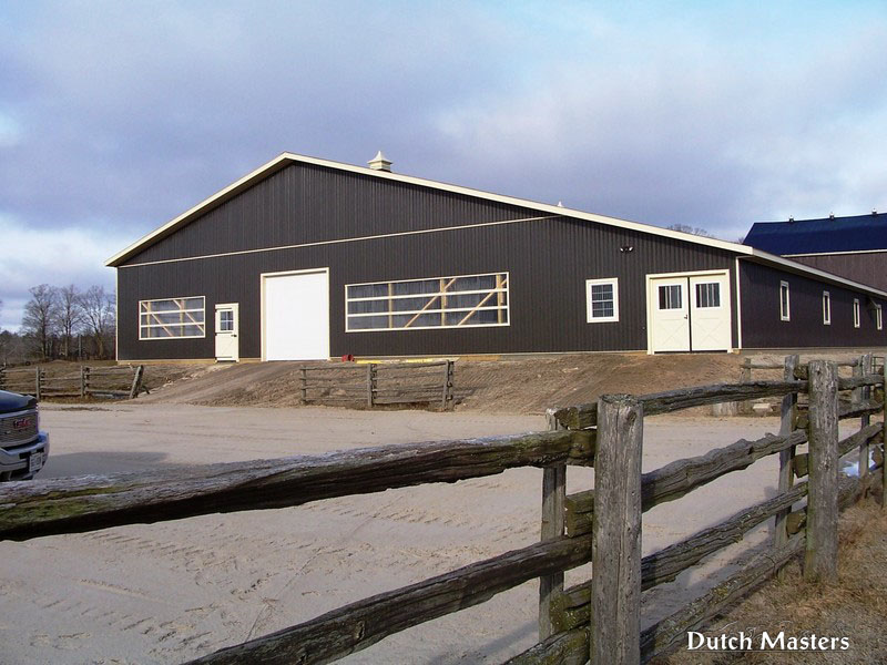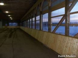 Arena with Board & Batten wall lining, sloped kickboards, vent panels and custom riding surface