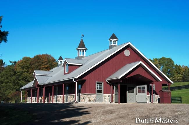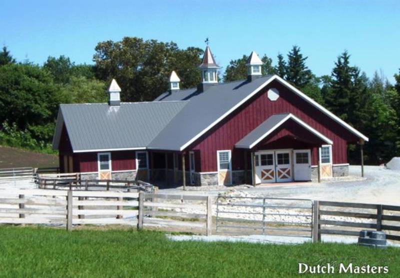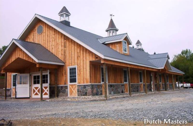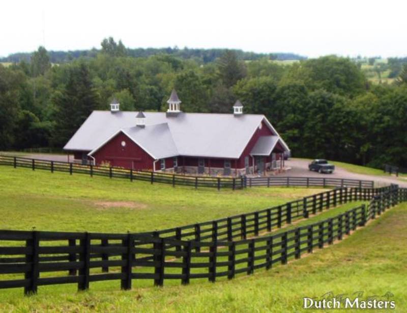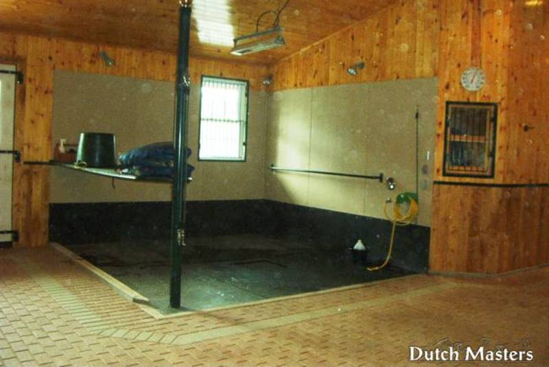 7 large 14'x14' stalls with custom hardware, brass latches and rubber mats