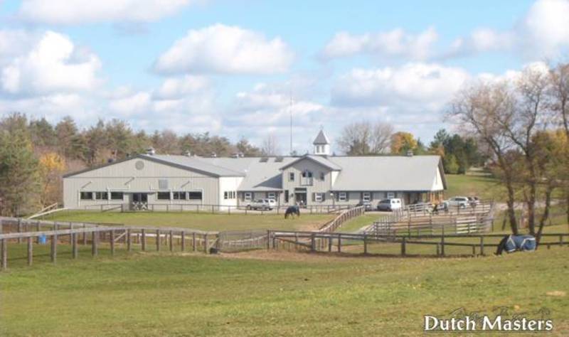 Viewing room, tack, two wash stalls, feed, hay, laundry, washroom