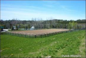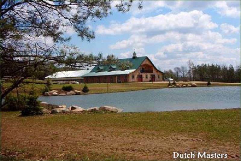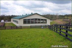 12 stall barn with 2 bedroom apartment, raised viewing lounge, new pond and new roads & parking.