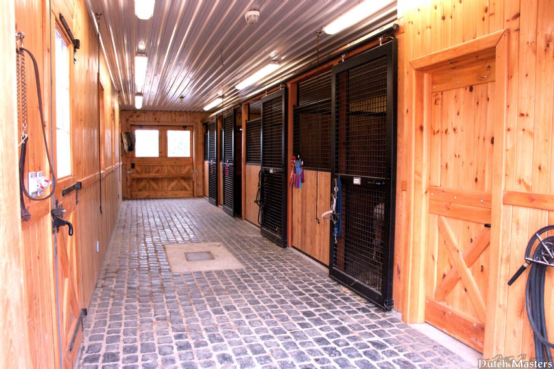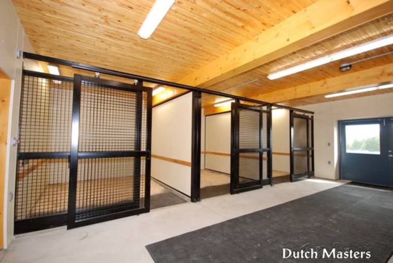 4 isolation stalls with custom hardware, casting rails, and lined with Ash T&G